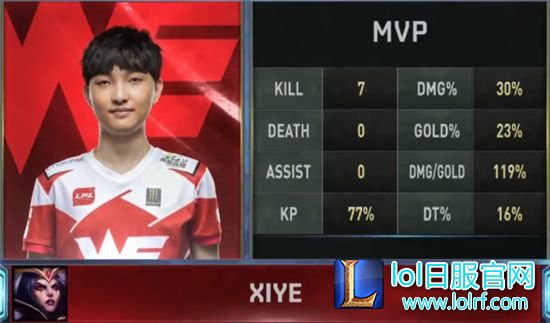 18分钟:WE的妖姬来到下路,配合队友击杀掉璐璐之后推掉下路一塔。