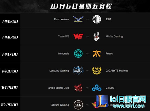 北京时间10月6日,2017《英雄联盟》全球总决赛小组赛将继续进行。在当天的比赛中,LPL赛区三号种子WE将战欧洲新军MSF。而LPL夏季赛冠军EDG,将面对强大对手SKT。此外,LMS赛区冠军FW将对上NALCS冠军TSM。