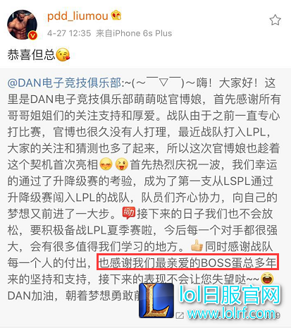 在前几日的LPL升降级赛中,DAN战队战胜VG晋级到了LPL,这是首支LSPL队伍以晋级赛获胜的方式升入至LPL,小智也用微博抽奖的方式恭喜DAN战队,这不禁让人联想:DAN是小智的老板? ![]() 近日,有人在直播中给小智送了一个合体,对此小智表示,谢谢你送的合体,我以LPL老板的身份感谢你。然后小智又说道:“我自己都快忘了有DAN这个战队了,3年前死乞白列的和我俩合作,当年建队时目标剑指S6……在LSPL呆了那么久我也上来了。” 说完这些还不忘嘲讽PDD与五五开:“顺便帮我安慰一波PDD,提前祝他已经回家了。你看同样做战队,咱脚踏实地,从LSPL一步一个脚印。要不有的人吹牛逼,沾点股份,说我是IM的,要不就是YM的,不行,浮夸!” DAN许久没有运营的微博也终于开了腔,PDD也转发:“恭喜但总”。 ![]() 那么问题来了,蛋总是谁?小智并不是真正的BOSS吗?PDD又对这条微博加以解释: ![]() DAN的官博也评论到: ![]() 官博也间接否认了小智是他们老板的这一说法...而PDD嘴里的打脸某人也是指的就是小智,想必小智现在应该蛮尴尬的吧。 ![]() 其实早在去年年底,两个人就曾撕过,当时小智宣布出院,加之自己的生日到了,十分的开心,让粉丝们去各大平台刷弹幕玩,之后节奏也飘到了PDD的直播间。对此嫖老师表示这些水军真的烦,并且直指小智买假人气,刷水军。随后这些节奏又飘到小智的耳朵里,小智反问:“到底谁是假人气?雇水军?”随后两家粉丝弹幕互怼,场面好生壮观。 PDD作为YM的亲生老板,可谓是付出了不少心血,这六遇LPL而不进,PDD也没有打消念头,仍然挺直了腰杆往前面走。再看小智这边,没听他谈起过自己有一支战队,可能仅仅是投资了一部分股份而已,算是小投资人。这DAN刚刚升入了LPL就出来冷嘲热讽,还被PDD、官博打脸,怕是不太合适吧。 那么小智是否还会再次回应PDD呢?一起关注事后的发展吧! |