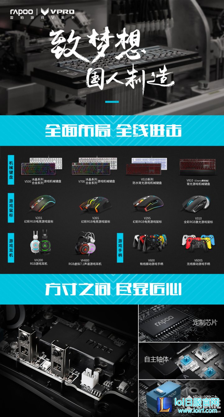 耀世合金,极具魅力,勾勒出指间的艺术,闪耀合金的光芒; 此前推出的87键雷柏V500RGB合金版幻彩背光游戏机械键盘,重塑了199元机械键盘标杆。今日,老牌实力大厂,国产外设领军品牌——雷柏(RAPOO)为旗下雷柏游戏V系列打造的104全尺寸RGB机械键盘标杆之作——V700RGB合金版幻彩背光游戏机械键盘。金属质感卓越的铝合金机身,兼以支持单键独立设置灯光的1680万色RGB背光环绕以及强悍的游戏性能,全面布局,用心打造。 ![]() 流光幻彩 盛世闪耀 V700RGB合金版搭载1680万色幻彩RGB背光系统,“色诱”着每一位玩家。办公+游戏模式下的19种玩灯模式,囊括广大玩家酷爱的灯光模式,一应俱全,并支持单键独立设置任意灯光颜色,满足你的贪心和不满足。 ![]() 金彩纷呈 质感非凡 有金属才能更出彩。扎实的做工、可靠的品质、细腻的质感是雷柏的标签。V700RGB合金版秉承雷柏大厂的一贯风范,在制作工艺以及用料上极其讲究,键盘表面采用铝合金上盖,类肤磨砂手感,不仅具有金属的质感,还具备出色的触感,窄边框设计的键盘四周边缘采用苹果金属CNC切边工艺,配上VPRO专属金属LOGO,将质感推向了极致。 ![]() 细节制胜 绝不将就 粗中有细,绝不将就。触感极佳的双色注塑悬浮式键帽,出色的回弹中带来极佳的手感,更不用担心因手汗腐蚀键帽上的字符,绝不磨损不褪色。键盘背面配有4个疏水孔,贴心的设计让你不再担心一时的大意。键盘底部贴有5块防滑脚垫以及支架包覆式防滑脚垫,纵使激烈游戏,键盘也纹丝不动。编织线材+镀金USB接口+静电磁环+魔术贴绑带,处处细节都彰显雷柏大厂的风范。 ![]() 匠心质造 品味之选 轴体作为机械键盘的灵魂。雷柏V700RGB合金版采用自主研发、反复调试手感的雷柏黑轴/青轴/茶轴,单轴寿命达到6000万次,第三代RGB轴体的注入,加上自适应贴片LED导光柱的设计,透光更加均匀,柔和不刺眼,让玩家在触觉和视觉上获得双重享受。 ![]() 板载内存 个性设置 V700RGB合金版作为又一款为玩家精心打造的游戏利器,关键时候怎能卡顿?全键无冲突的设计驱散所有的担忧,支持108颗按键同时按下,带你开启满屏的技能连招。配套驱动软件,板载内存的记忆元素,加上大容量的宏定义存储,104键驱动可编程,都只因让玩家能获得更好的游戏体验,施展个性化设置。 ![]() 耀世合金,流光幻彩,V700RGB合金版凭借极致性价比,将塑造299元机械键盘的新标杆,雷柏也将继续践行着普及机械键盘,用国货造福玩家。 ![]() 雷柏游戏VPRO:游戏梦想制造家 雷柏(RAPOO):老牌实力大厂,国产外设领军品牌 。作为业内的上市企业,雷柏以“游戏梦想制造家”为方向,一直致力用最专业的态度为玩家打造极致的游戏操作体验。采用科学的生产方案、严格的品质管理、机器人自动化产线等行业领先的生产工艺和制造技术,并连续多年赢得IF与红点等国际设计大奖。 雷柏成立于2002年,从无线外设的行业领军品牌,到2008年国内最早进入专业游戏外设领域,推出广为畅销的雷柏VPRO游戏外设系列。雷柏不断革新,升级核心技术,在2016年不仅引领“全民RGB风”的游戏外设行业方向,更打造出游戏鼠标、游戏机械键盘、游戏耳机、游戏手柄、游戏鼠标垫等全线电竞级的明星产品。 2014年,签约英雄联盟皇族战队,代表LPL征战S4赢得全球赛亚军; 与LOL明星选手Uzi,DOTA传奇明星Zhou合作,推出定制款产品。 2015年,赞助参与国内电竞赛事NEST与IET,推动中国电竞事业发展。 2016年,签约电竞女子冠军Miss(韩懿莹)为定制产品代言人,推出定制款产品; 签约电竞世界冠军Misaya若风(禹景曦)为品牌代言人,推广中国电竞事业; 签约英雄联盟GT战队,成为官方唯一合作外设品牌,并肩征战LPL; 签约FFF电子竞技培训基地,成为官方唯一合作外设品牌,助力人才培养。 2017年,签约英雄联盟OMG战队,成为官方唯一合作外设品牌,并肩征战LPL。 雷柏游戏深扎电竞领域,不断与全国的重大电竞赛事、知名电竞战队和顶级电竞明星合作,共同持续努力,为玩家不断打造专业的游戏外设精品,定制每个玩家的专属游戏梦想。 ![]() ![]() |