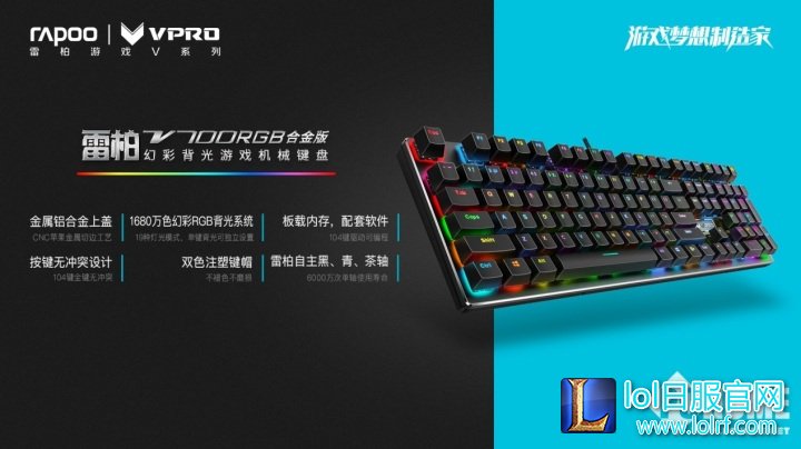 雷柏V700RGB合金版幻彩背光游戏机械键盘上市,lol日服