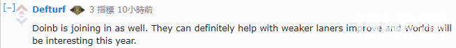 · DoinB也加入这次集训了。他们可以针对选手较弱的方面进行训练,帮助他们进步,今年的世界赛好看了。