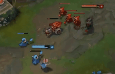还可以利用对方补刀的瞬间去消耗对手,简单示例上方火女为了补炮车,走位稍微靠前,并且使用了自己的Q技能补刀,劫直接上前打出爆发一套,火女直接失去主动权。 在下路对线时,也可以利用给对方ADC补车的那个僵直时期,去消耗或者出钩这样来提升对线期的压制力,建立良好的对线优势。 对线期进阶技巧——英雄优势推线压制补刀