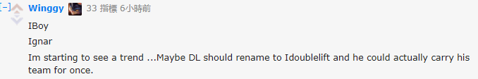 - iBoy IgNar 我在想Doublelift要不要改个名叫IDoublelift,这样他就能真正的carry队伍一次了