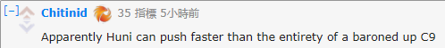 - 很明显,Huni一个人推得都比有大龙的C9全队快