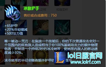 由于纯肉流卡尔玛需要配合充足的蓝量施放技能、普攻打伤害和减少大招CD,冰拳增加坦度、蓝量、和普攻特效还有冷却缩减的效果都完美的填充了卡尔玛所需的所有属性。