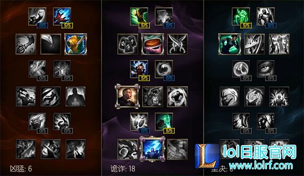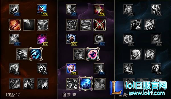 红色:固定攻击力*9;黄色:固定护甲*9;蓝色:成长魔抗*9;精华:固定攻击力*3 传统的AD符文即可,虽然W和E这两个技能都有ap加成,但是带攻击力可以提升Q和R的收益。之所以蓝色不带冷却是因为在出装方面可以达到满冷却,因此不推荐。 天赋推荐: