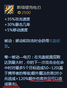 这套装备,不管顺风或者逆风,你有瞬间秒掉对方脆皮的能力。顺风超神,逆风杀人拯救队伍。 众所周知,卡牌装备落后以后,红牌Q是清不到后排兵的,需要一个个A,清线能力极大落后,你就有可能: 1、 错过支援最佳时间。 2、 被GANK。 3、 被对方抓住你补刀的瞬间消耗你。 在有了电刀和巫妖之后,你WQ无论是否装备落后,你都能非常快的清线刷F4,支援。 而电刀与耀光与黄牌是互相叠加的! 我们来看具体属性: