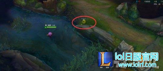 在如图红圈处插眼就是一个不错的选择,由于对方打野时间和习惯的问题,以及双方中路兵线的问题。如果对方有盲僧皇子这种前期输出爆炸的打野,那么在3:00左右的时候做眼可以起到不错的成效。我方打野很强势的话,那么同样是3:00在此处做眼,让打野发育刷野到3级,带着双buff来gank,毕竟兵线被压制,逼得对方中单交出召唤师技能还是很轻松的。