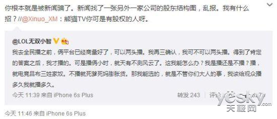 面对这么多非议,小智又发微博表示是经过同意之后才这么做的。而且在微博中他回应大家自己并不是熊猫TV的股东。