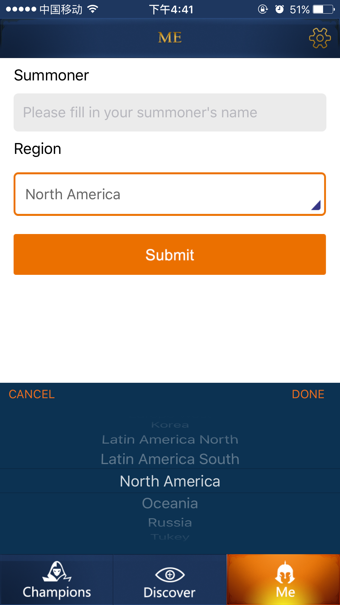 点击界面上的设置齿轮图标可以查询战绩以及切换服务器,如北美,韩国。。