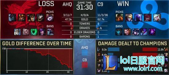 31分钟:C9正面进攻轻松带走对方的皇子和大嘴随后一波进攻拿下比赛。