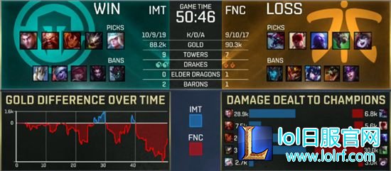 50分钟:FNC老鼠想要在中路偷对方的岩雀,但是自己被对方赶到的支援秒掉,IMT追击击杀掉璐璐之后直接一波拿下比赛。