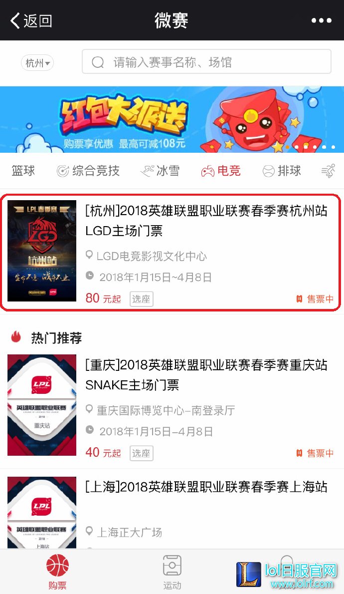 目前LPL春季赛杭州站线下门票已经在1月8日(星期一)下午14:00正式开始售卖!杭州及周边地区喜欢英雄联盟和LGD的朋友们千万不要错过!