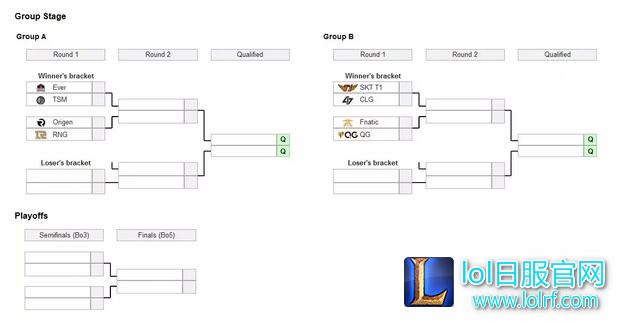接着AB组的出线队伍(共四支)进入淘汰赛环节(A组第一位对阵B组第二位,B组第一位对阵A组第二位)并最终决出总冠军。目前看来RNG所在的A组似乎压力并不大——起码不用面对B组的大魔王SKT了。