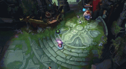 图中可见,巴德家中的泉水有女警的一个真眼,另外巴德还主动踩到了女警事先放好的一个夹子上。这时候女警在家里的泉水放技能,先E后Q,于是这个技能就出去了,然后一直蹦着巴德就去了!这个非指向性技能,居然变成了追踪型技能!最终穿越全图命中了敌方泉水的巴德!